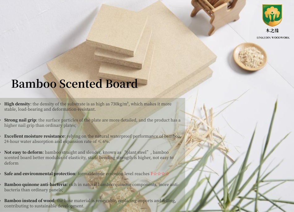 竹の香りのボードには、多くの優れた特性があります。その防水性と湿気のない性能は優れており、24時間の水吸収と膨張率は業界標準よりもはるかに低くなります。湿気の多い環境でも、特に水分防止のための必要な要件が高いキッチン、バスルーム、その他のエリアに適しています。強度と安定性、竹の香りの卓越したパフォーマンスの観点から、竹自体が丈夫な特徴を、変形が容易ではなく、圧縮強度が高く、毎日の使用においてさまざまな圧力に耐えることができます。同時に、竹には「竹キノーネ」成分が豊富であるため、竹の香が自然な抗菌抗変数効果を持ち、家庭環境の健康を効果的に保護します。
